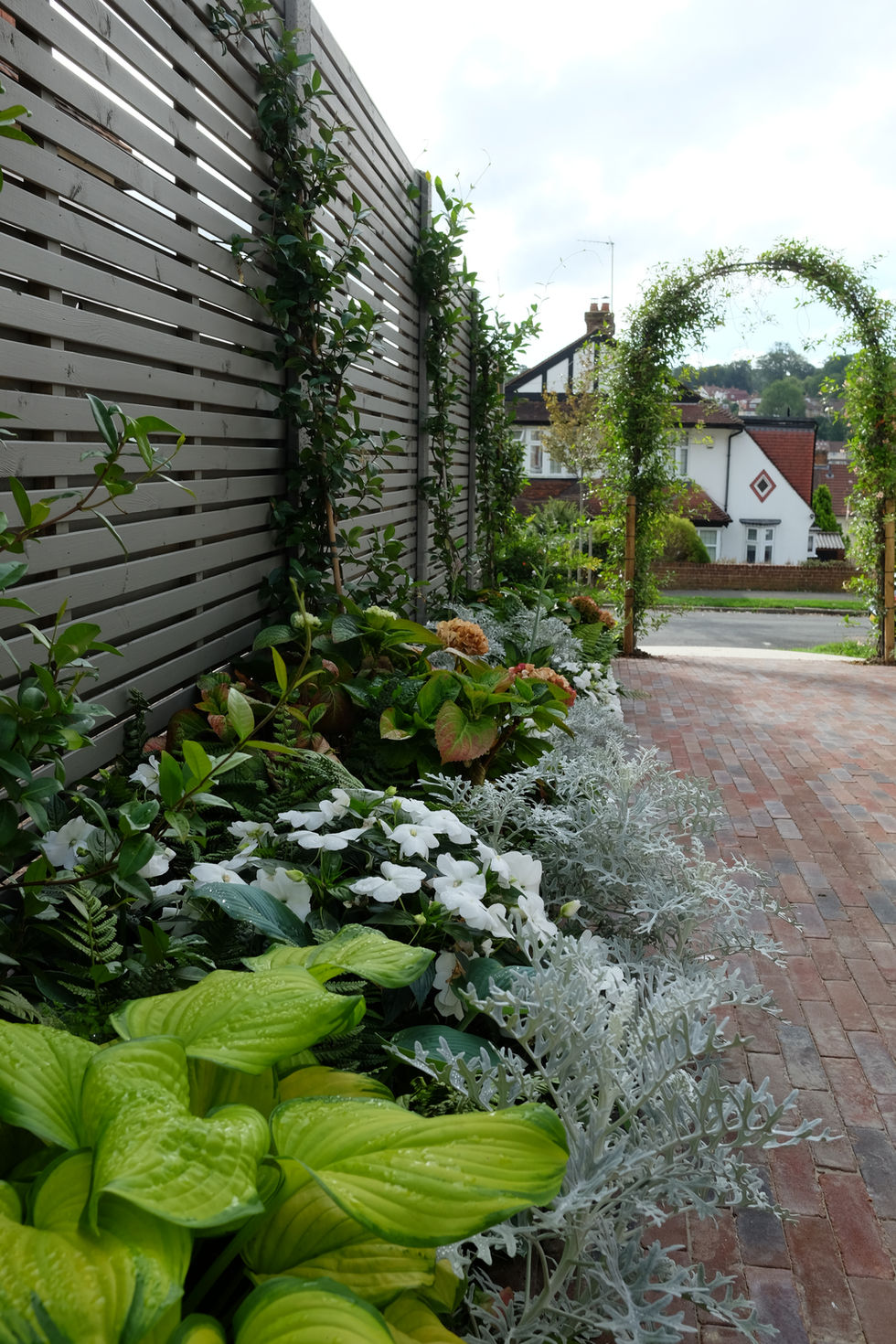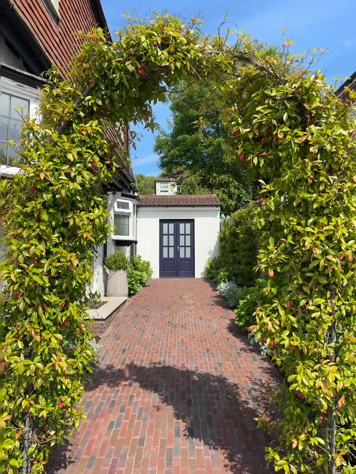 Step into elegant outdoor spaces featuring modern entrance pathways, brick walls, and wooden fences. These designs offer a perfect blend of sophistication and natural beauty, with illuminated pathways and vibrant flowers.